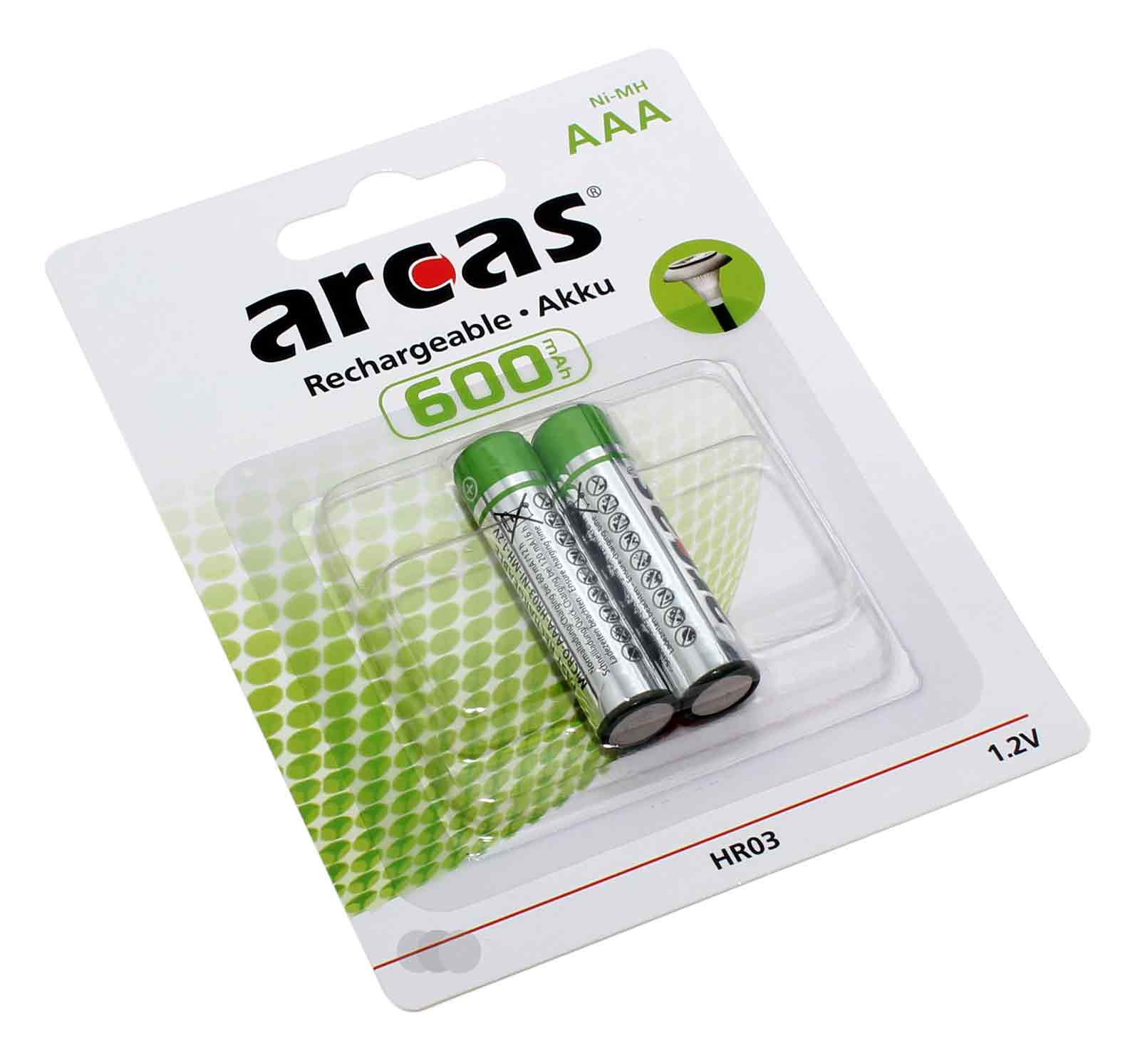 2er Packung Arcas AAA Micro HR03 Nickel-Metallhydrid Akku mit 1,2 Volt und 600mAh Kapazität. Hersteller Artikelnummer 17706203.