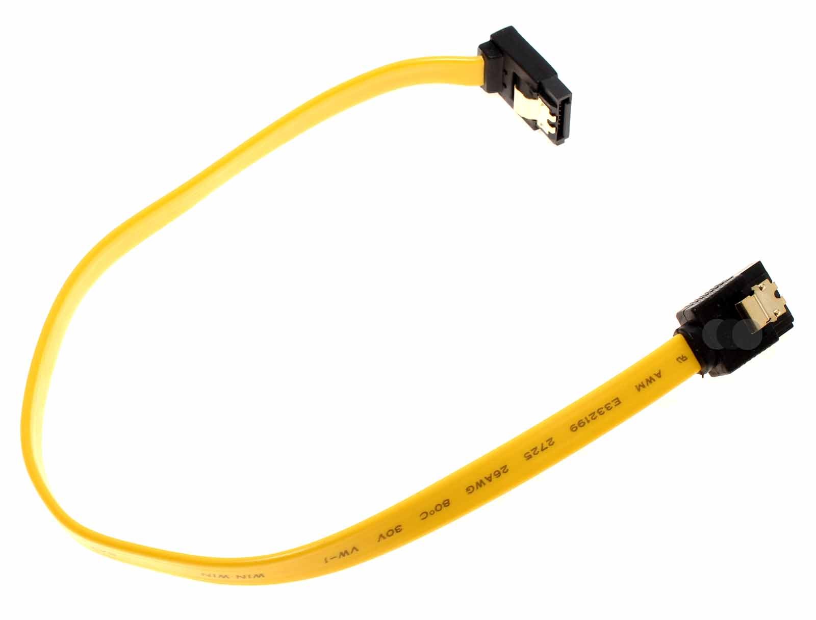 30cm SATA Kabel von DeLock mit nach oben gewinkeltem und geradem Stecker und Metall Clips in Farbe gelb. Artikelnummer 82472.