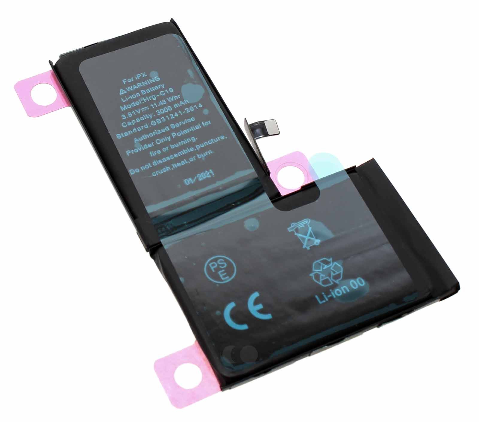Alternativer Lithium-Polymer Akku inkl. Klebestreifen für Apple iPhone X (A1865, A1901, A1902) Handy, Smartphone, Mobiltelefon mit 3,81 Volt und 3000mAh Kapazität.