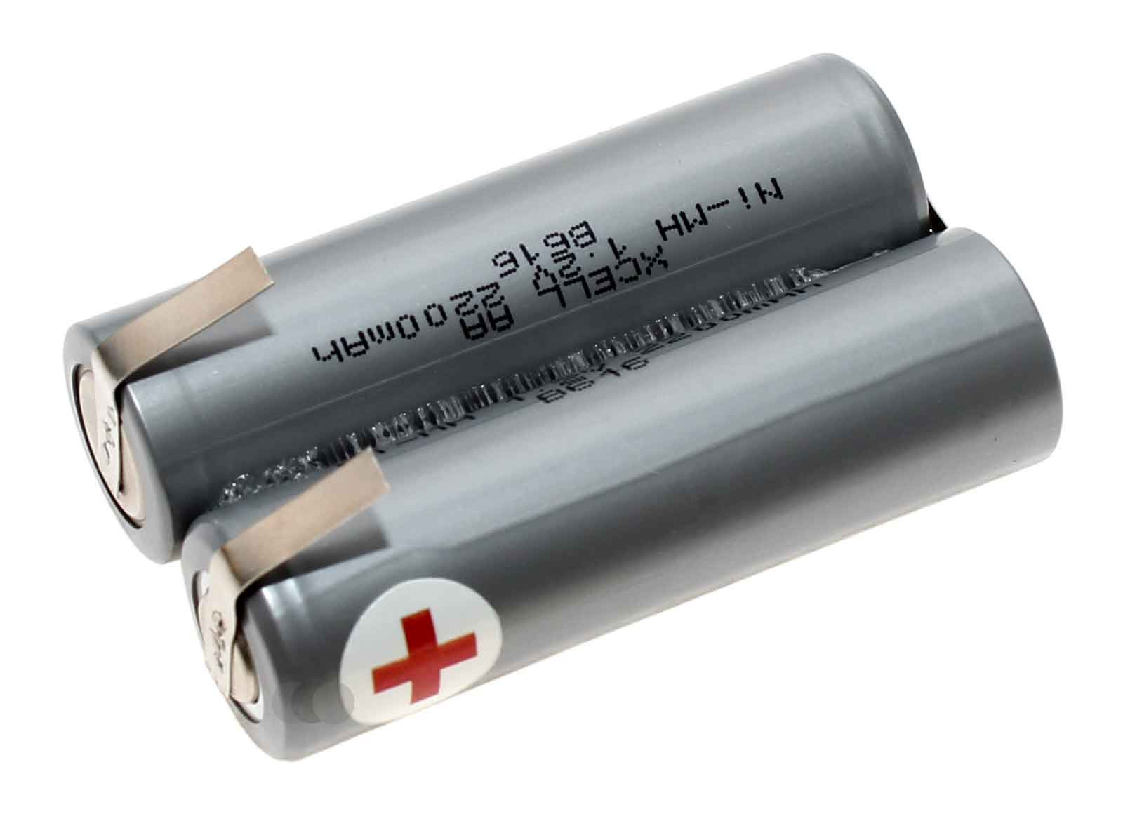 2,4V NiMH Akkupack mit 2200mAh Kapazität für diverse Rasierer, bestehend aus zwei hochwertigen akku-wechsel.de Industrie-Akkuzellen